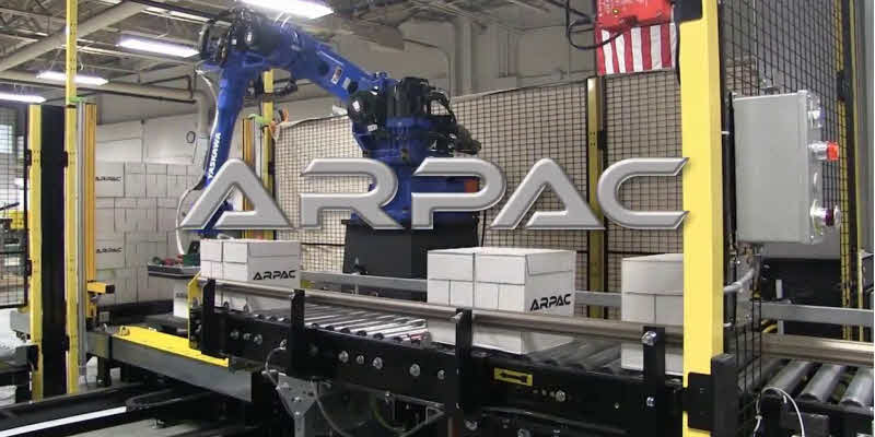 El Arbot es una celda de paletización robótica prediseñada que automáticamente apila y envuelve paletas con especificaciones exactas. Se compone de un robot multiaxis, pinza, envoltura automática de estiramiento, dispensador de paletas y sistema de transporte dentro de una huella de espacio eficiente.