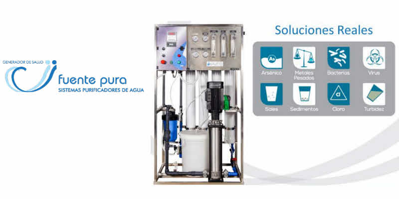 Al igual que la osmosis inversa de la línea hogar, el sistema industrial purifica proporcionando agua dulce de alta calidad tanto química como bacteriológicamente. Removiendo la mayoría de los sólidos (inorgánicos u orgánicos) disueltos en el agua (hasta el 99%) y adaptado a las necesidades de caudal para cada compañía o negocio.