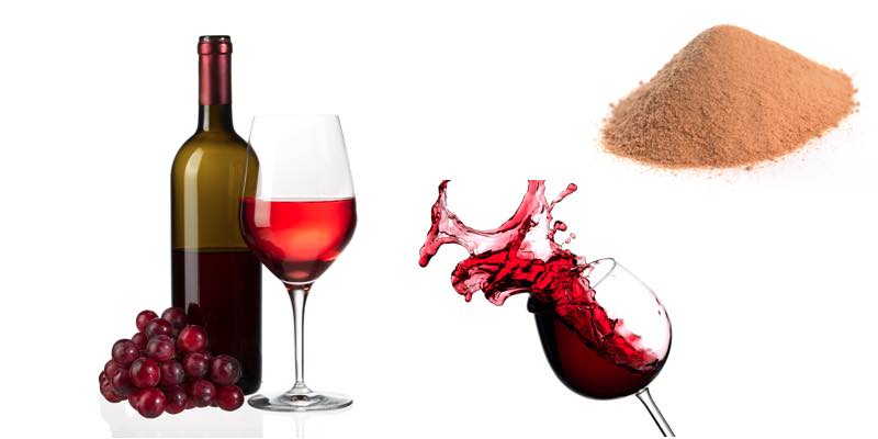 El vino, vino tinto en particular, junto con otras bebidas, alimentos y frutas, contiene taninos.