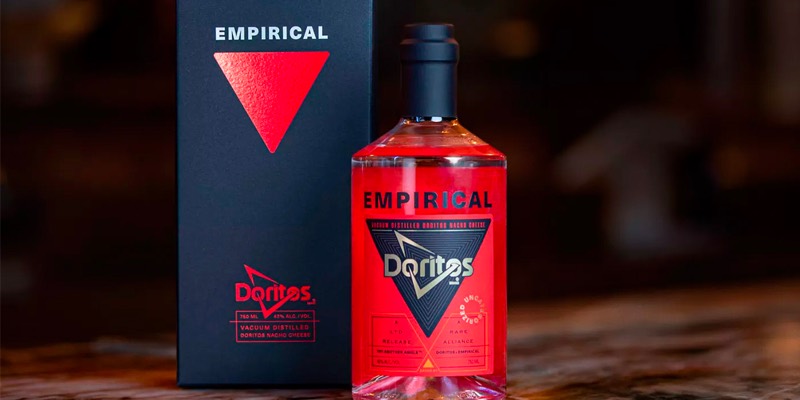 Doritos y Empirical en un audaz paso hacia la innovación de sabores, el gigante de los aperitivos Doritos y el creador de bebidas Empirical han unido sus fuerzas, ambas empresas presentan una inusual bebida alcohólica que combina el característico sabor a nacho de queso con licore fuerte.