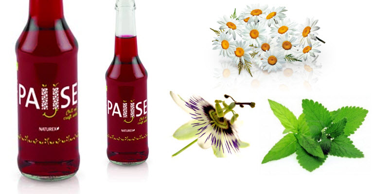 En lugar de un té de hierbas clásico, Naturex ha desarrollado PAIISE, un refresco carbonatado artesanal que contiene ingredientes botánicos conocidos por sus propiedades calmantes (manzanilla, melisa, pasiflora, etc.). Los demás componentes, con el colorante, sabor y propiedades espumantes son todos obtenidos a partir de material vegetal, por lo que este innovador producto es una bebidas 100 amigable.